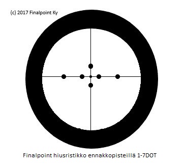 harrastekäyttöön hiusristikoita keskipisteellä sekä ennakkopisteillä 1-6Dot